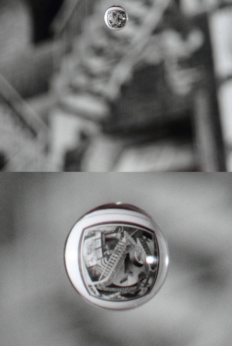 I perusing the blogesphere and came across this. It's an amazing capture of an Escher painting caught in a drop of water. There are several "easier" approaches at doing something of that nature, however the effort put in by this photographer really is impressive.